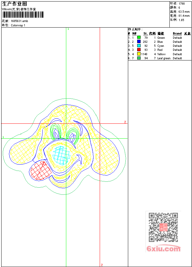 - emb花版参数: 大小:30.50 KB / 尺寸:81*64[毫米] / 针数:1790针 / 线色:6 / 格式:emb / 版本:9
