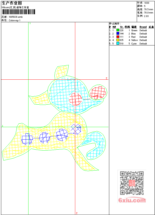 - emb花版参数: 大小:28.50 KB / 尺寸:70*71[毫米] / 针数:1830针 / 线色:5 / 格式:emb / 版本:9