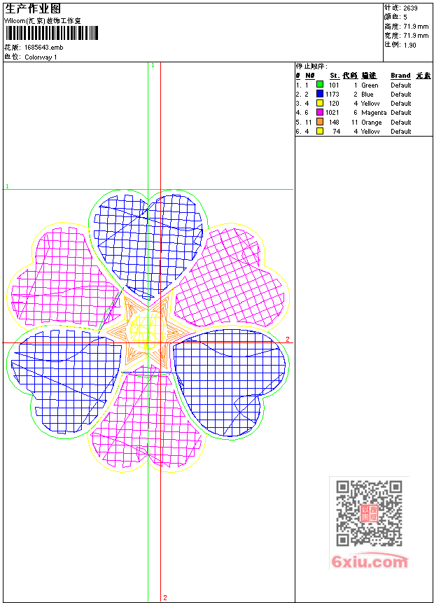 - emb花版参数: 大小:28.50 KB / 尺寸:72*72[毫米] / 针数:2639针 / 线色:5 / 格式:emb / 版本:9