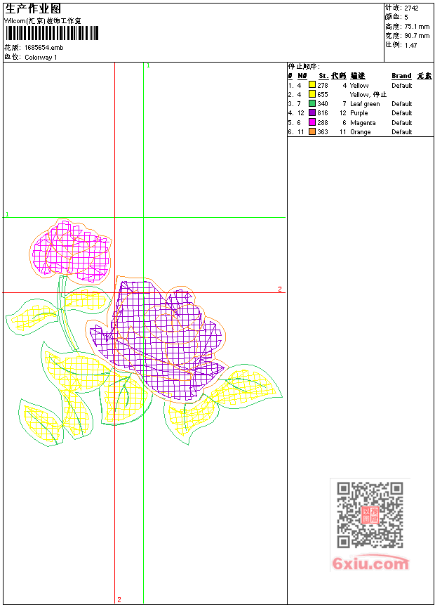 - 版带文件需绣花软件方可打开,可配色打印导出各种格式或直接上机绣。如无绣花软件可下载1:1模拟效果图。