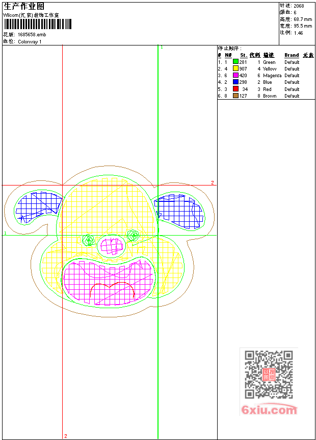 - 版带文件需绣花软件方可打开,可配色打印导出各种格式或直接上机绣。如无绣花软件可下载1:1模拟效果图。