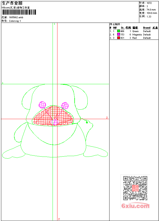 - 版带文件需绣花软件方可打开,可配色打印导出各种格式或直接上机绣。如无绣花软件可下载1:1模拟效果图。