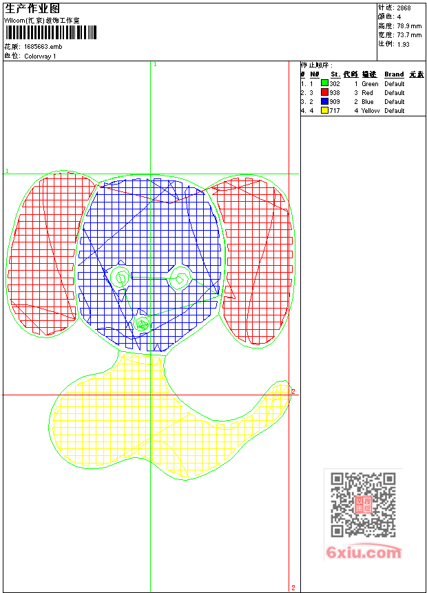 - emb花版参数: 大小:25.50 KB / 尺寸:74*79[毫米] / 针数:2868针 / 线色:4 / 格式:emb / 版本:9