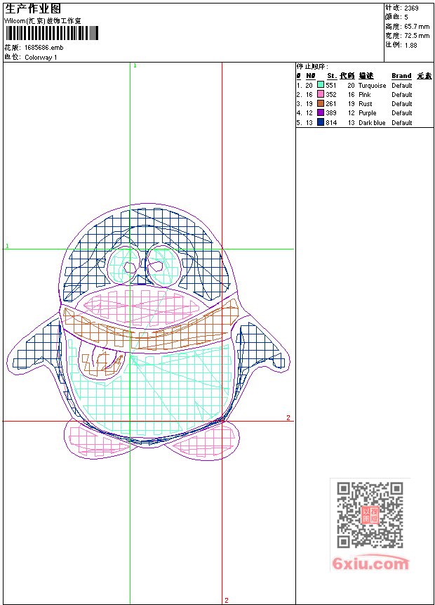 - 版带文件需绣花软件方可打开,可配色打印导出各种格式或直接上机绣。如无绣花软件可下载1:1模拟效果图。