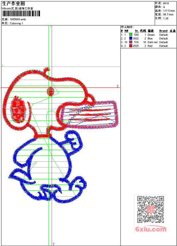 - 版带文件需绣花软件方可打开,可配色打印导出各种格式或直接上机绣。如无绣花软件可下载1:1模拟效果图。