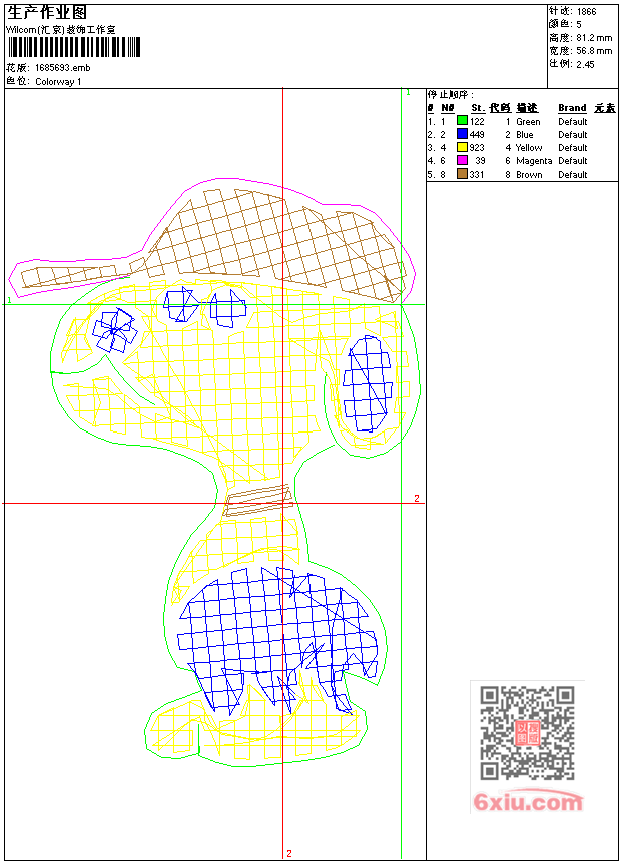 - emb花版参数: 大小:28.50 KB / 尺寸:57*81[毫米] / 针数:1866针 / 线色:5 / 格式:emb / 版本:9