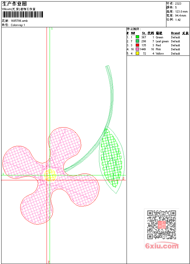 - emb花版参数: 大小:25.00 KB / 尺寸:94*123[毫米] / 针数:2323针 / 线色:5 / 格式:emb / 版本:9