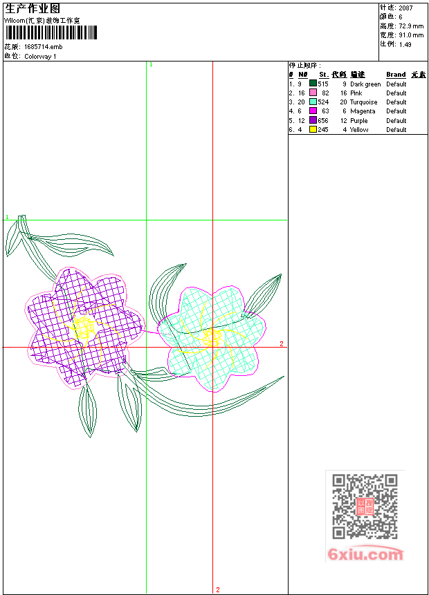 - emb花版参数: 大小:31.50 KB / 尺寸:91*73[毫米] / 针数:2087针 / 线色:6 / 格式:emb / 版本:9