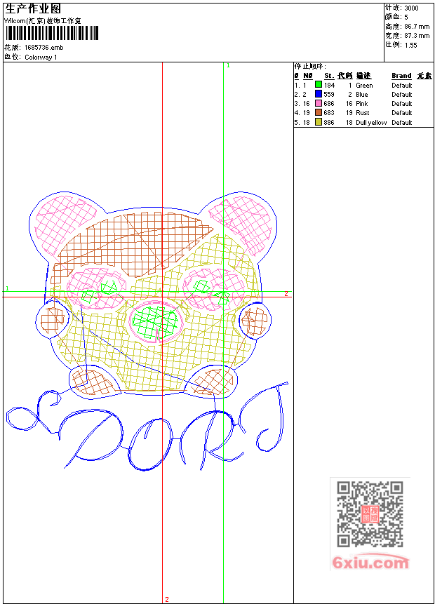 - 版带文件需绣花软件方可打开,可配色打印导出各种格式或直接上机绣。如无绣花软件可下载1:1模拟效果图。