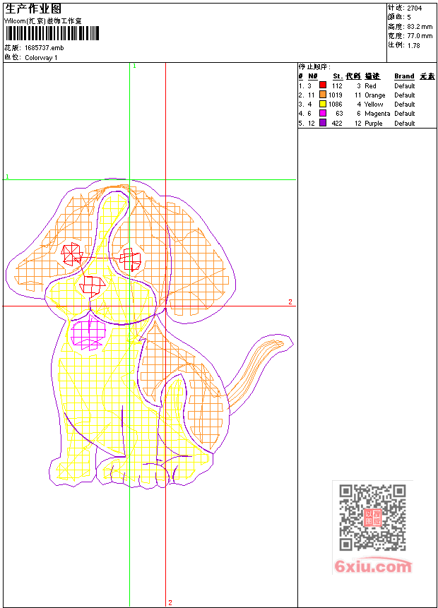 - 版带文件需绣花软件方可打开,可配色打印导出各种格式或直接上机绣。如无绣花软件可下载1:1模拟效果图。
