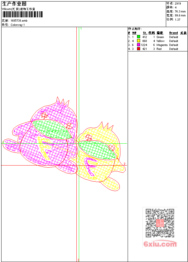 - 版带文件需绣花软件方可打开,可配色打印导出各种格式或直接上机绣。如无绣花软件可下载1:1模拟效果图。