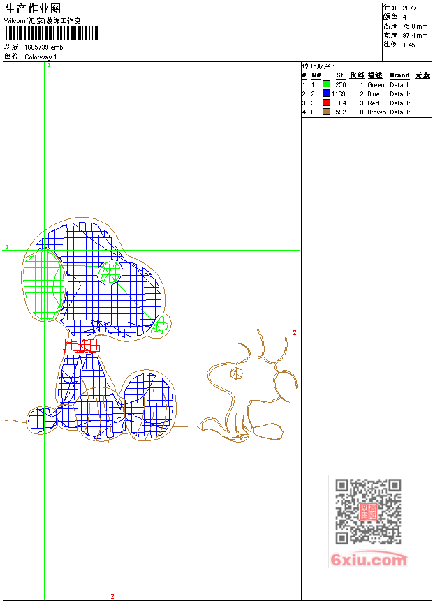 - 版带文件需绣花软件方可打开,可配色打印导出各种格式或直接上机绣。如无绣花软件可下载1:1模拟效果图。