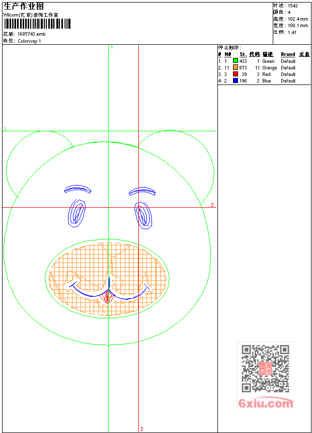 - 版带文件需绣花软件方可打开,可配色打印导出各种格式或直接上机绣。如无绣花软件可下载1:1模拟效果图。