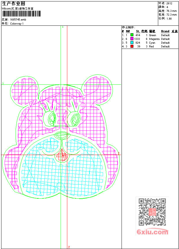 - 版带文件需绣花软件方可打开,可配色打印导出各种格式或直接上机绣。如无绣花软件可下载1:1模拟效果图。
