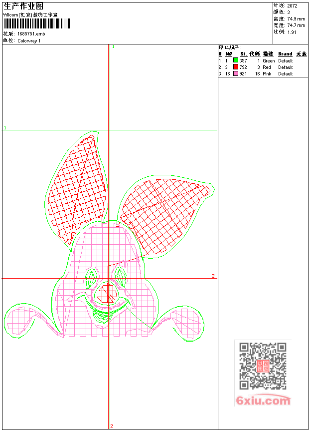 - 版带文件需绣花软件方可打开,可配色打印导出各种格式或直接上机绣。如无绣花软件可下载1:1模拟效果图。