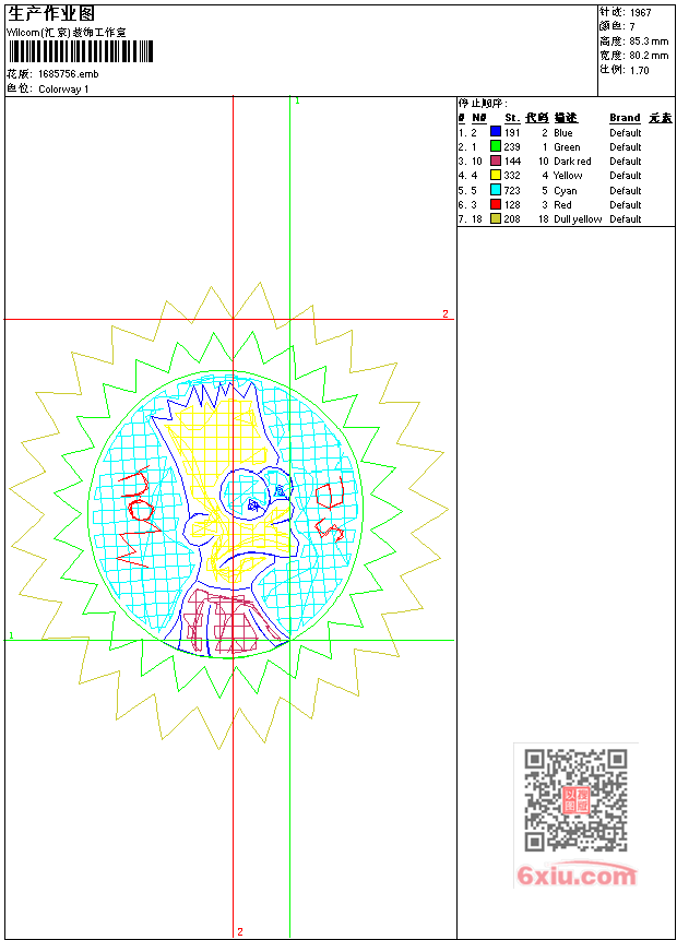 - 版带文件需绣花软件方可打开,可配色打印导出各种格式或直接上机绣。如无绣花软件可下载1:1模拟效果图。