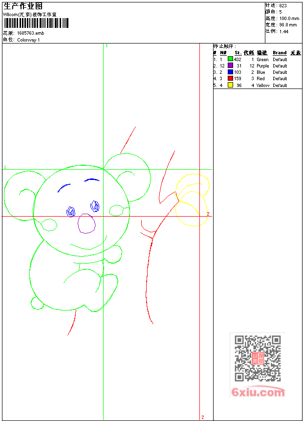 - emb花版参数: 大小:22.50 KB / 尺寸:99*100[毫米] / 针数:823针 / 线色:5 / 格式:emb / 版本:9