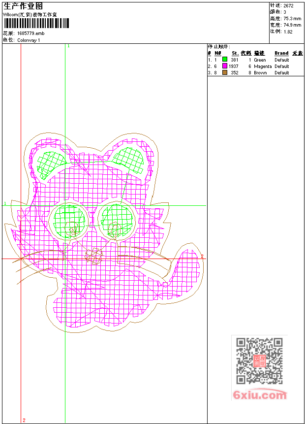 - 版带文件需绣花软件方可打开,可配色打印导出各种格式或直接上机绣。如无绣花软件可下载1:1模拟效果图。