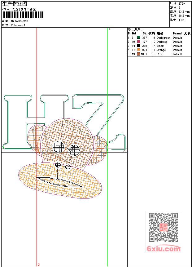 - 版带文件需绣花软件方可打开,可配色打印导出各种格式或直接上机绣。如无绣花软件可下载1:1模拟效果图。