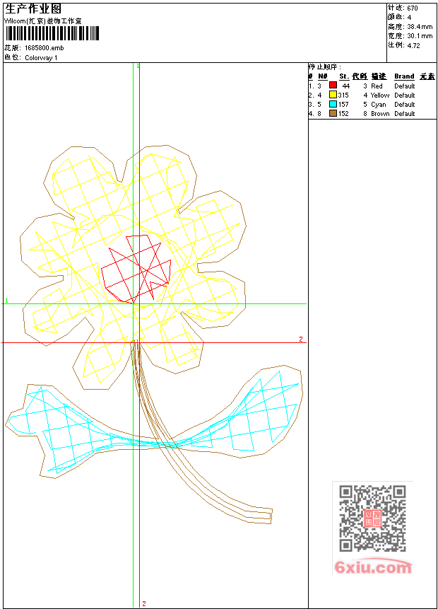 - emb花版参数: 大小:23.50 KB / 尺寸:30*38[毫米] / 针数:670针 / 线色:4 / 格式:emb / 版本:9