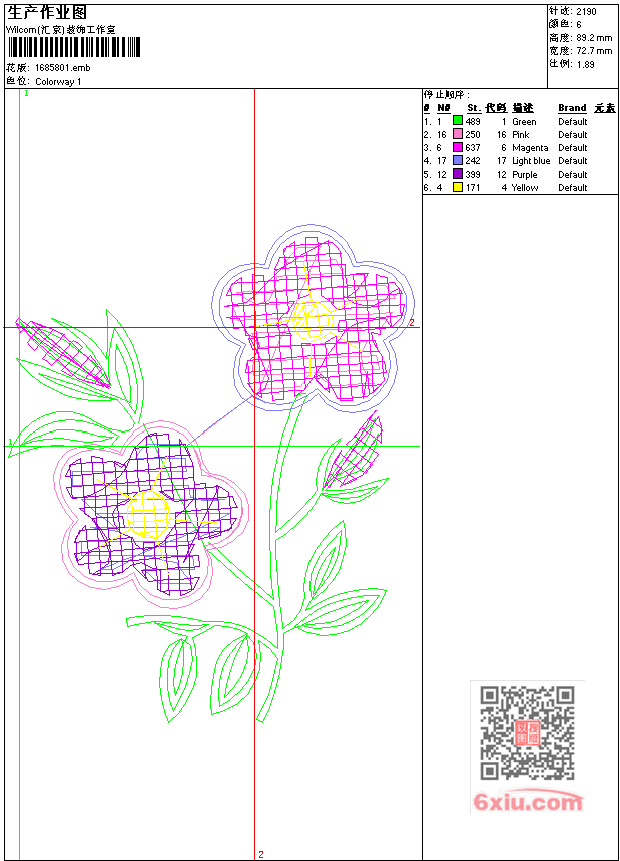 - emb花版参数: 大小:32.50 KB / 尺寸:73*89[毫米] / 针数:2190针 / 线色:6 / 格式:emb / 版本:9
