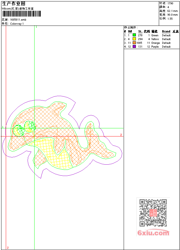 - 版带文件需绣花软件方可打开,可配色打印导出各种格式或直接上机绣。如无绣花软件可下载1:1模拟效果图。