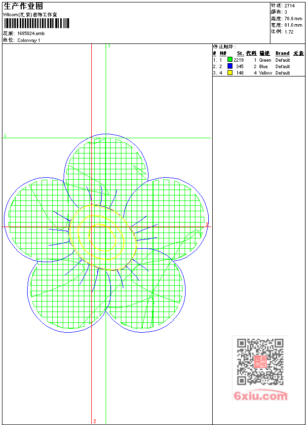 - emb花版参数: 大小:23.50 KB / 尺寸:81*79[毫米] / 针数:2714针 / 线色:3 / 格式:emb / 版本:9