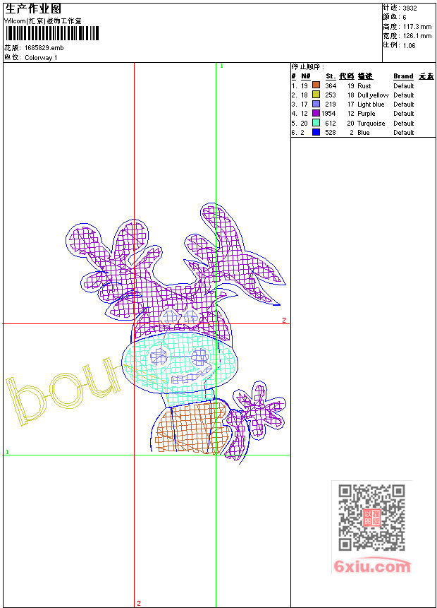 - 版带文件需绣花软件方可打开,可配色打印导出各种格式或直接上机绣。如无绣花软件可下载1:1模拟效果图。