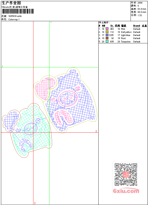 - 版带文件需绣花软件方可打开,可配色打印导出各种格式或直接上机绣。如无绣花软件可下载1:1模拟效果图。