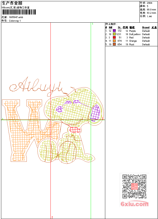 - 版带文件需绣花软件方可打开,可配色打印导出各种格式或直接上机绣。如无绣花软件可下载1:1模拟效果图。