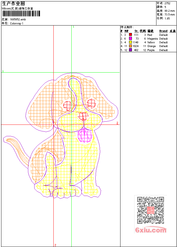 - emb花版参数: 大小:32.00 KB / 尺寸:74*80[毫米] / 针数:2752针 / 线色:5 / 格式:emb / 版本:9