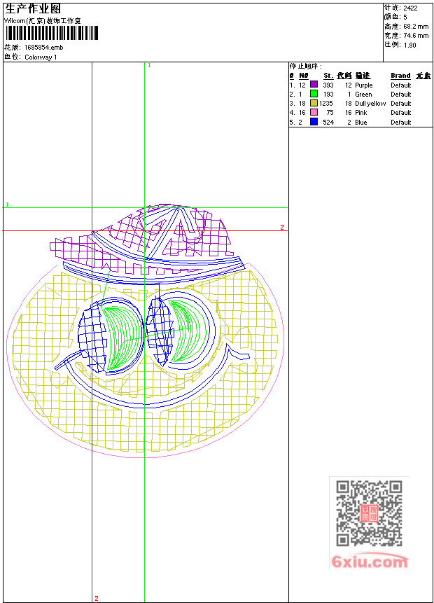 - 版带文件需绣花软件方可打开,可配色打印导出各种格式或直接上机绣。如无绣花软件可下载1:1模拟效果图。