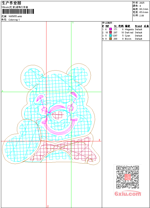 - 版带文件需绣花软件方可打开,可配色打印导出各种格式或直接上机绣。如无绣花软件可下载1:1模拟效果图。