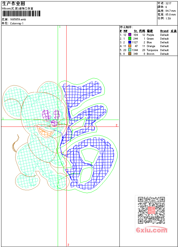 - 版带文件需绣花软件方可打开,可配色打印导出各种格式或直接上机绣。如无绣花软件可下载1:1模拟效果图。