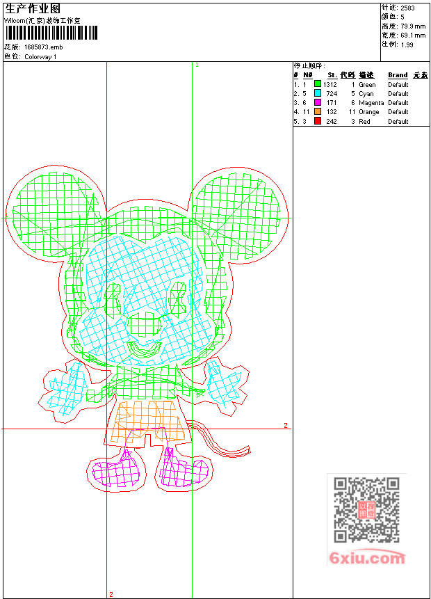 - 版带文件需绣花软件方可打开,可配色打印导出各种格式或直接上机绣。如无绣花软件可下载1:1模拟效果图。