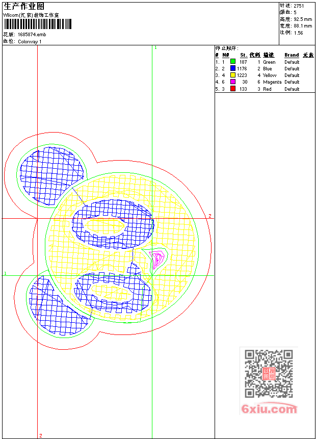 - emb花版参数: 大小:29.00 KB / 尺寸:88*93[毫米] / 针数:2751针 / 线色:5 / 格式:emb / 版本:9