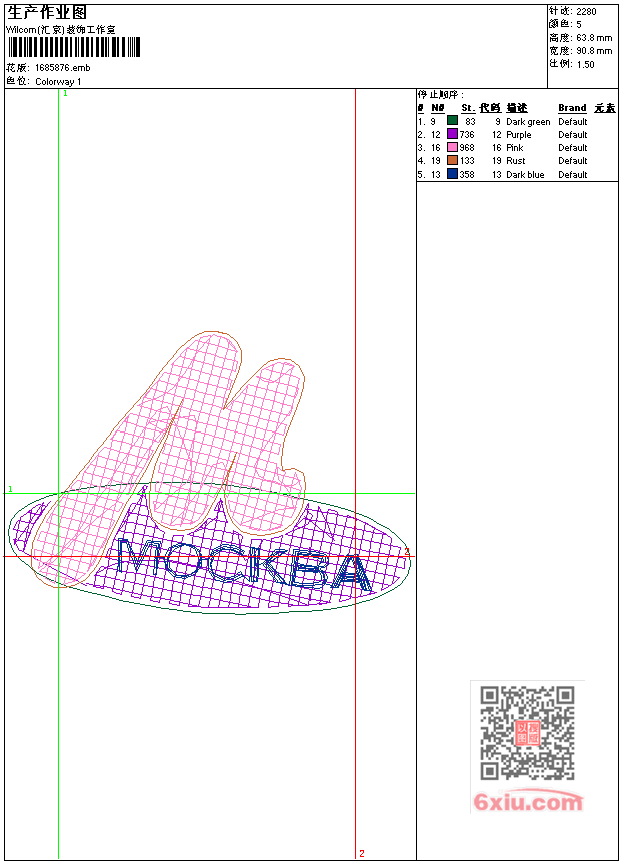 - 版带文件需绣花软件方可打开,可配色打印导出各种格式或直接上机绣。如无绣花软件可下载1:1模拟效果图。