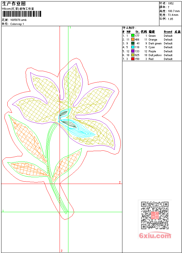 - 版带文件需绣花软件方可打开,可配色打印导出各种格式或直接上机绣。如无绣花软件可下载1:1模拟效果图。