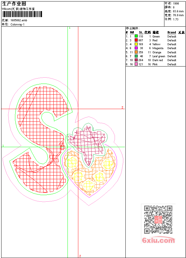 - 版带文件需绣花软件方可打开,可配色打印导出各种格式或直接上机绣。如无绣花软件可下载1:1模拟效果图。