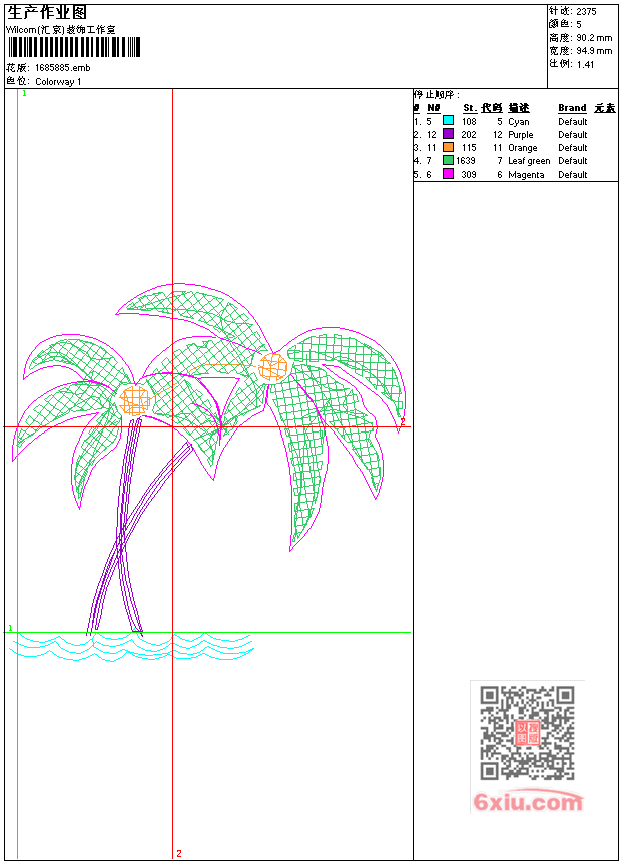 - 版带文件需绣花软件方可打开,可配色打印导出各种格式或直接上机绣。如无绣花软件可下载1:1模拟效果图。