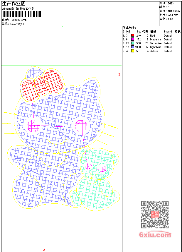 - 版带文件需绣花软件方可打开,可配色打印导出各种格式或直接上机绣。如无绣花软件可下载1:1模拟效果图。