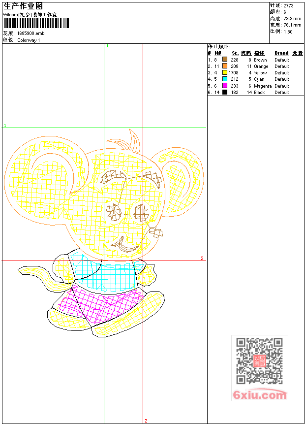 - 版带文件需绣花软件方可打开,可配色打印导出各种格式或直接上机绣。如无绣花软件可下载1:1模拟效果图。