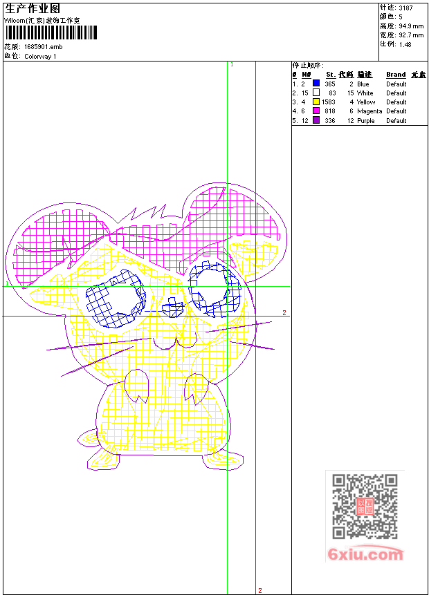- 版带文件需绣花软件方可打开,可配色打印导出各种格式或直接上机绣。如无绣花软件可下载1:1模拟效果图。