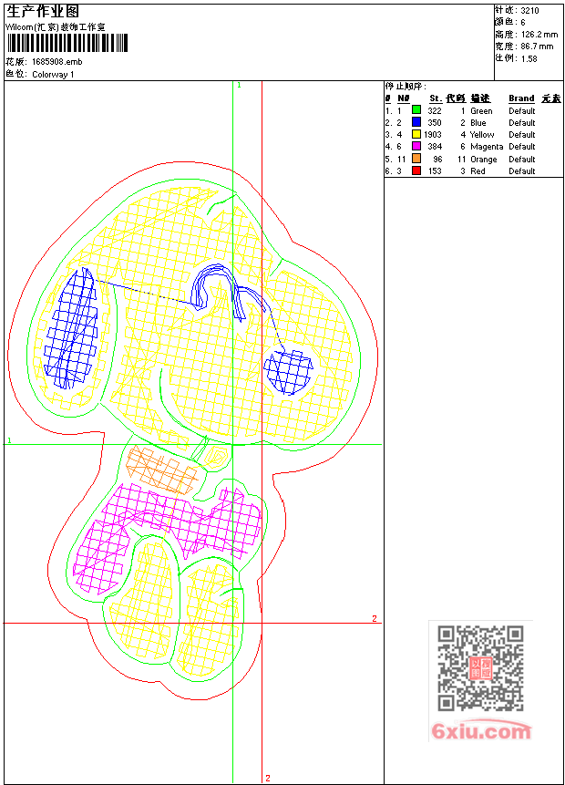 - emb花版参数: 大小:33.00 KB / 尺寸:87*126[毫米] / 针数:3210针 / 线色:6 / 格式:emb / 版本:9