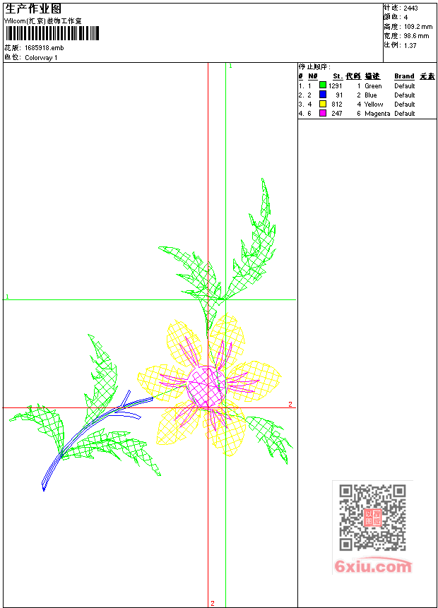 - emb花版参数: 大小:31.00 KB / 尺寸:99*109[毫米] / 针数:2443针 / 线色:4 / 格式:emb / 版本:9