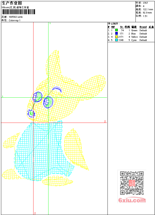 - emb花版参数: 大小:28.00 KB / 尺寸:93*122[毫米] / 针数:3767针 / 线色:4 / 格式:emb / 版本:9