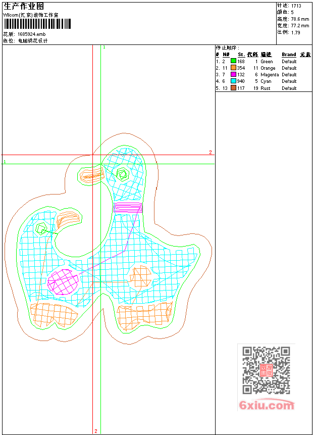 - 版带文件需绣花软件方可打开,可配色打印导出各种格式或直接上机绣。如无绣花软件可下载1:1模拟效果图。