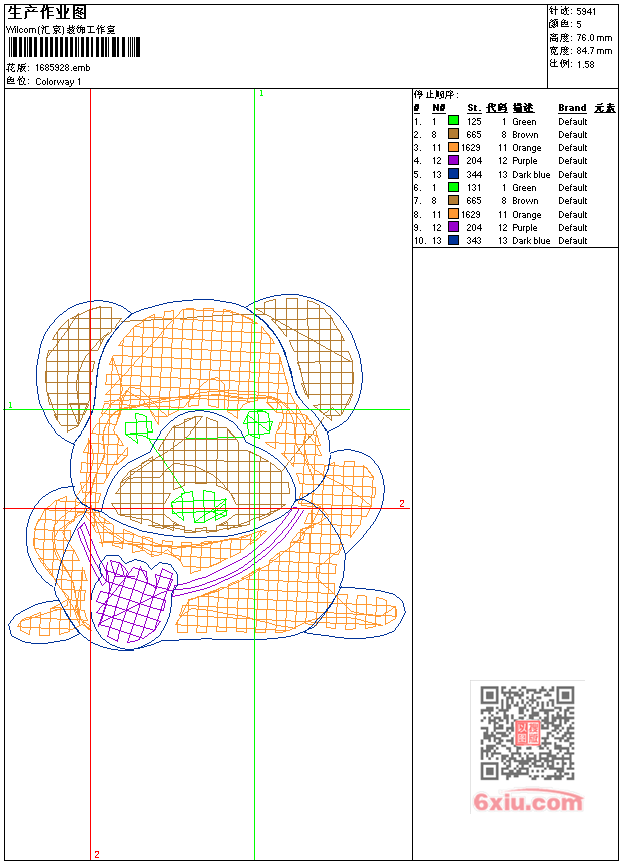 - 版带文件需绣花软件方可打开,可配色打印导出各种格式或直接上机绣。如无绣花软件可下载1:1模拟效果图。
