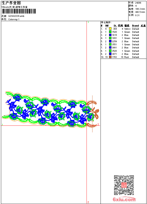 - emb花版参数: 大小:203.50 KB / 尺寸:443*188[毫米] / 针数:24266针 / 线色:4 / 格式:emb / 版本:7