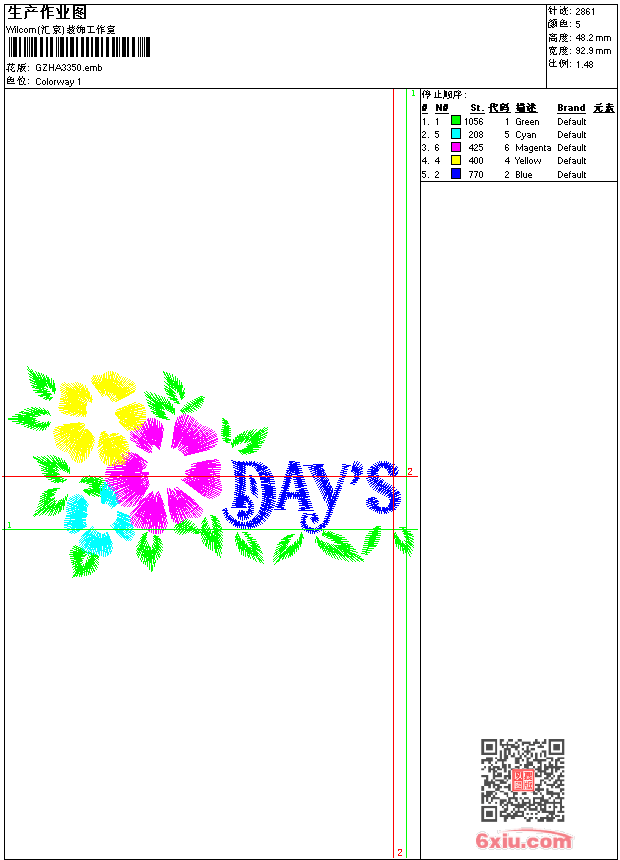 - emb花版参数: 大小:39.00 KB / 尺寸:93*48[毫米] / 针数:2861针 / 线色:5 / 格式:emb / 版本:9